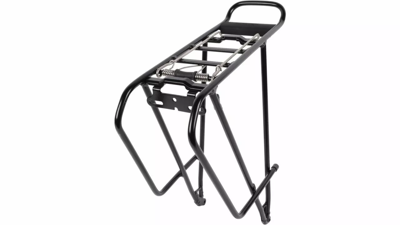 Der Tour 28 AVS von ATRANVELO ist ein stabiler Touren-Gepäckräger aus Alu-Rohren mit einem Durchmesser von zehn Millimetern, der an den Hinterbaustreben des Rads befestigt wird. Dank des ATRANVELO-Transportsystems können Taschen und Körbe mit passendem Adapter werkzeugfrei an diesem Träger aus Aluminium montiert werden auch an den tieferen Packtaschenstreben. Durch diese Befestigungsweise wird die Schwerpunktlage des Gepäcks verbessert, was wiederrum für bessere Fahreigenschaften sorgt. Ein Reflektorhalter, eine Edelstahl-Federklappe sowie die maximale Traglast von 27 kg runden den Charakter dieses Gepäckträgers ab. Eigengewicht: 695 g.