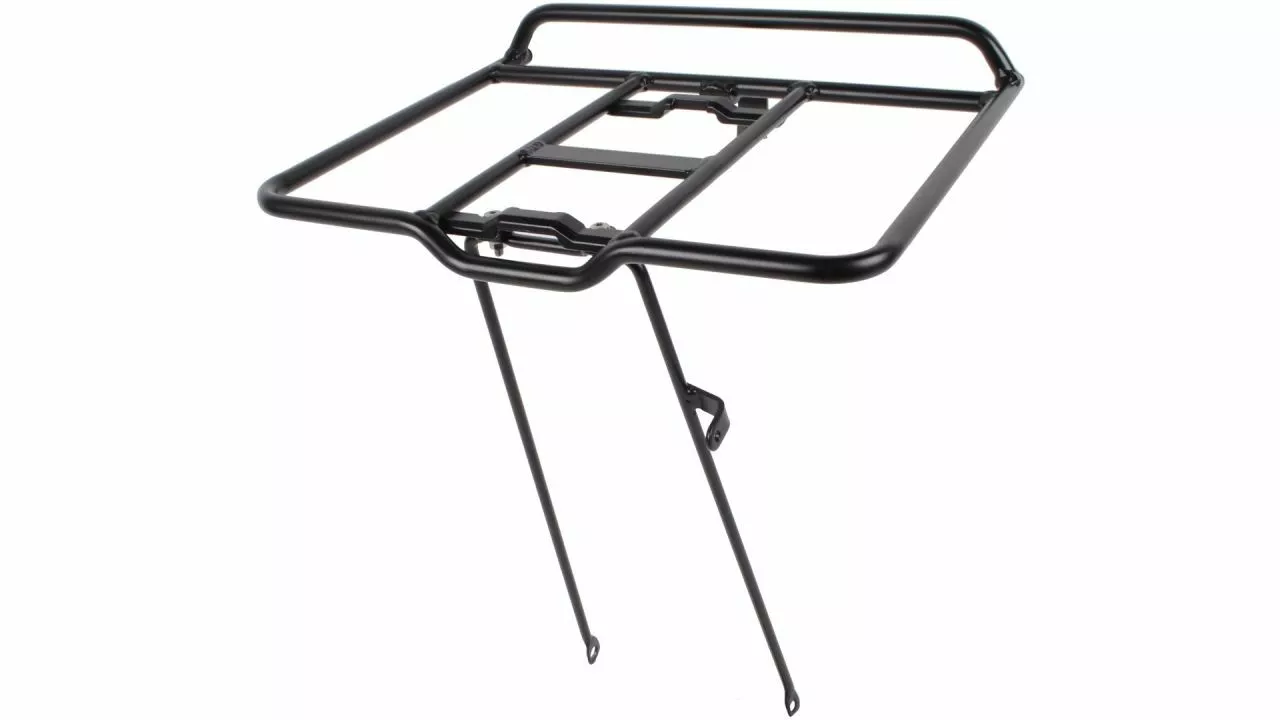Der Cargo Lite AVS verbindet eine breite Auflagefläche mit dem AVS-Transportsystem von ATRANVELO. Der Rahmen aus 12-mm-Alu-Rohren trägt bis zu 10 kg. Selbst wiegt er 710 g. Er stützt sich unten über die Befestigung an der Achse ab und hält oben an der Gabel. Der Scheinwerfer kommt stattdessen an den seitlichen Lampenhalter. Ausgerichtet für Fahrräder in 26'' und 28''.