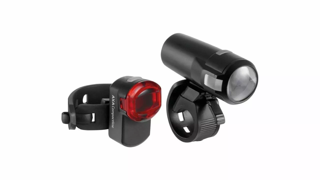Klein und hell: So lassen sich die Leuchten der AXA Compactline dank ihrer neuen Doppellinsen-Technologie am besten beschreiben. Diese kompakten Fahrradlichter mit einer sportlichen Ausstrahlung sind per USB nachhaltig aufladbar. Ein entsprechendes USB-Kabel wird mitgeliefert.<br><br>Die Compactline lässt sich einfach am Fahrrad montieren und gut transportieren. Durch das flexible Gummi-Befestigungsband sind diese Leuchten außerdem für fast jedes Fahrrad geeignet.<br><br>Der Scheinwerfer leuchtet mit einem aufgeladenen Akku bis zu 12 h lang, bei einer Ladezeit von weniger als 2,5 h. Der Akku des Rücklichts hält 10 h lang und ist in 2 h aufgeladen. <br>Mit einer Lebensdauer von 1.000 Aufladungen bietet Compactline eine nachhaltige Alternative zu den üblichen Batterie-Beleuchtungen.<br><br>Die Lichtleistung von 20 Lux ermöglicht eine gute Sichtbarkeit. Dabei leuchtet Compactline bei Temperaturen zwischen – 10 und 40 ° C zuverlässig, auch bei Regen und Schnee.<br><br>Dieses Set beinhaltet einen 20-Lux-Scheinwerfer sowie ein LED Rücklicht. Während man mit der Frontlampe 40 m weit sehen kann und bis zu einer Entfernung von 2,5 km gesehen wird, fällt das Rücklicht anderen Verkehrsteilnehmern auf eine Distanz von bis zu 300 m auf.