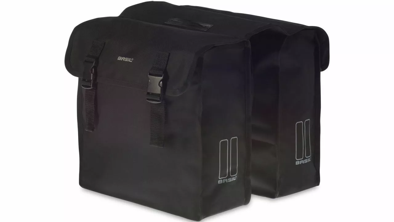 Die Mara XL von BASIL ist eine moderne und stilvolle Fahrradtasche. Diese Doppelpacktasche lässt sich leicht am Gepäckträger eines Damen- oder Herrenfahrrads befestigen. Es handelt sich um eine Fahrradtasche, die sich für viele Zwecke anbietet. Dank ihrem überraschend großen Inhalt von 35 l und ihrer ausgezeichneten Qualität ist die BASIL Mara XL-Fahrradtasche ideal fürs Einkaufen gehen oder eine lange Fahrradtour. <br><br>In der Tasche lassen sich jede Menge Einkäufe verstauen oder leere Flaschen zur Pfandrückgabe mitnehmen. Die Tasche ist aus wasserabweisendem 600D Polyester gefertigt und spritzwasserdicht. Weiterhin hat die Fahrradtasche vorne und hinten doppelte Reflektorstreifen. Hiermit ist man auch in Dunkelheit während einer kurzen oder langen Fahrradfahrt gut sichtbar. <br><br>Die Fahrradtasche fällt aufgrund ihrer vorgefertigten und abgesteppten Aussparungen für Gepäckträger-Spanngurte, ihres biegsamen Materials und ihrer praktischen Schnallen auf. Als hochwertige Fahrradtasche verdient sich die BASIL Mara XL eine klare Kaufempfehlung.
