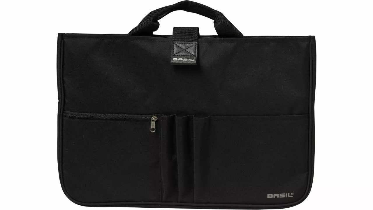 Dieser Organiser von BASIL schützt Ihr Notebook optimal und lässt sich leicht überall hin mitnehmen. Er bietet sich für Notebooks mit einer Größe von bis zu 15,6 an. Die Tasche stellt ein praktisches Accessoire dar, um Ihr Notebook aufzubewahren und es auf dem Fahrrad mitzunehmen. Beim Pendeln ins Büro bzw. zum Bahnhof ist Ihr Notebook, iPad oder Laptop in dieser Tasche gut geschützt. <br>Sie ist aus stabilem Polyester gefertigt und mit diversen Einsteckfächern für Accessoires ausgestattet, zum Beispiel für das Ladegerät oder die Kabel für Ihren Laptop. <br><br>Darüber hinaus lässt sich der Organiser dank seiner praktischen Handgriffe leicht überall hin mitnehmen. Er ist somit eine Hilfe, wenn Sie zum Beispiel einen Termin außer Haus haben. <br>Die Notebooktasche lässt sich ausgezeichnet in Kombination mit der BASIL Urban Dry Business Bag nutzen. Die stilvolle Tasche bietet viele Vorteile und allerbeste Qualität zu einem attraktiven Preis.