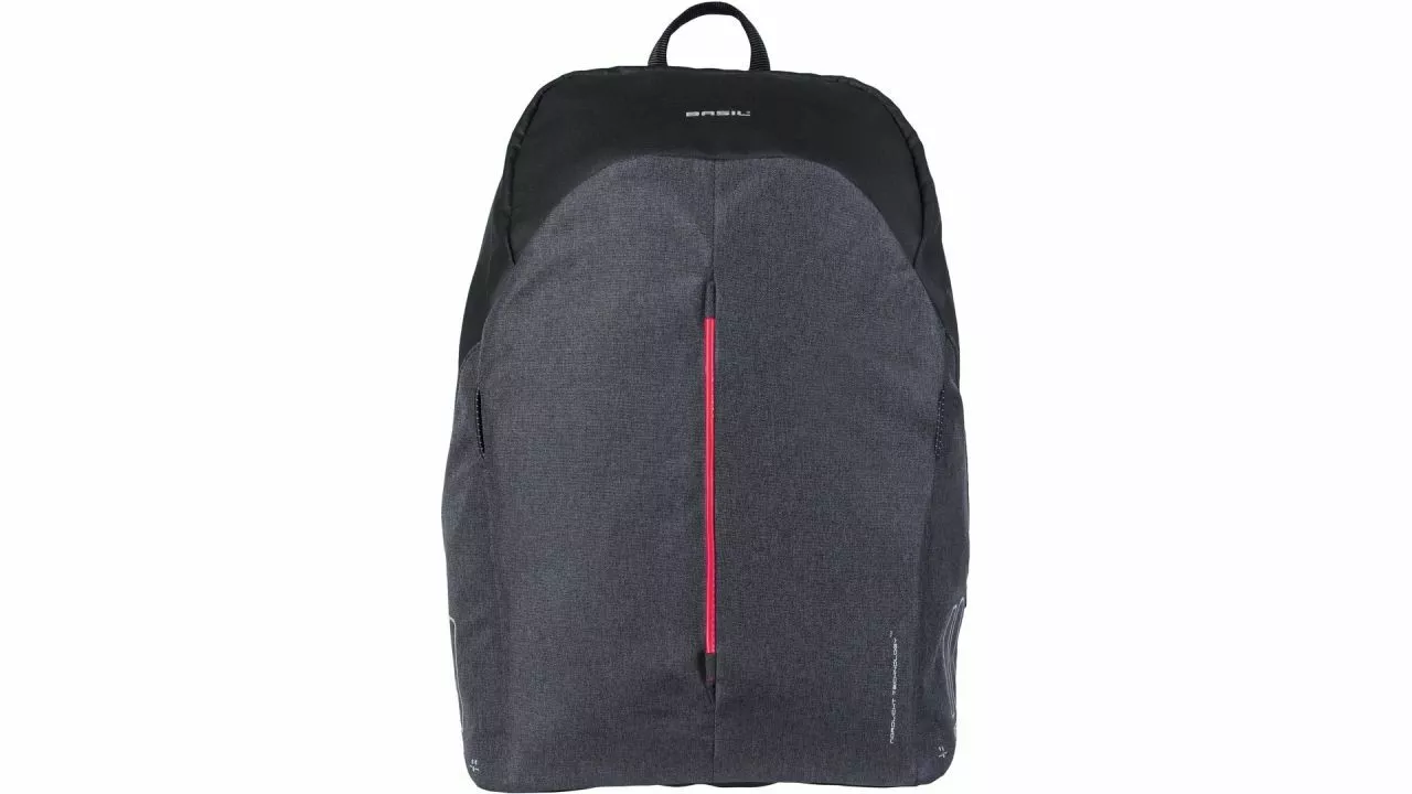 Beim B-Safe Backpack von BASIL handelt es sich um einen auffälligen Rucksack mit einigen innovativen Raffinessen und einem geräumigen Volumen von 18 l. Der Fahrradrucksack ist Fahrradtasche und Rucksack in einem. Die Tasche hat mit einem nicht sichtbaren Reißverschluss und einigen verborgenen Fächern eine effektive Anti-Diebstahl-Konstruktion. Ihre Gegenstände können Sie also diebstahlsicher transportieren. <br><br>In die Tasche passt ein 15.6-Laptop oder -iPad. Auch ein Ladegerät für das E-Bike und andere kleine Accessoires passen in die Tasche. Ausweis oder Fahrkarte sind im verdeckten Fach am Schulterriemen griffbereit und sicher untergebracht. Darüber hinaus können Sie am integrierten USB-Port Ihr Smartphone aufladen.<br>/> <br>/> Eine weitere intelligente Funktion ist die LED-Beleuchtung an der Vorderseite der Tasche (Nordlicht Technology). Diese dient als praktische Zusatzbeleuchtung, ersetzt jedoch in keiner Weise die gesetzlich vorgeschriebene Fahrradbeleuchtung.<br><br>Für optimalen Tragekomfort hat der Rucksack eine gepolsterte Rückseite und gepolsterte Schulterriemen. Mit dem Hook-On-System lässt sich die Tasche ganz einfach am Gepäckträger des Fahrrads oder E-Bikes einhängen. Durch den Transport des Rucksacks auf dem Gepäckträger statt auf dem Rücken erspart man sich einen schweißnassen Rücken.<br>Das Gewicht der Tasche ist auf dem Gepäckträger ein Stück nach unten verlagert, wodurch das Rad an Stabilität und damit auch an Sicherheit gewinnt.