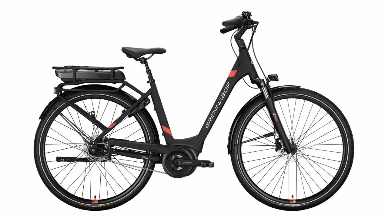Zuverlässig, alltagstauglich, für Stadt und auf Tour: Dafür ist das neue BRENNABOR T-26e gemacht. Das Trekking E-Bike steht für eine moderne Formensprache mit komfortabler Fahrweise. Das gibt der Tiefeinsteiger-Rahmen mit seinen Maßen schon vor – im Zusammenspiel mit der soliden Technik werden alle Fahrten im Alltag und auf Tour damit ganz selbstverständlich.<br><br>Einen guten Anteil an der alltäglichen Souveränität auf zwei Rädern gibt am T-26e der Active Line Antrieb von Bosch vor. Er unterstützt beim Pedalieren mit ausgewogenem Schub bis 25 km/h, wenn man das denn möchte. Mehr als genug Energie für die täglichen Strecken liefert dazu der PowerPack Akku mit reichweitenstarken 500 Wh Leistung. Die Antriebskräfte lassen sich am Intuvia-Display vom Lenker aus in vier Stufen einteilen. Dabei hilft die 7-Gang Shimano Nexus Nabenschaltung von Shimano, um die gewünschte Trittfrequenz zu finden. Und um souverän zum Stehen zu kommen, sind die hydraulischen Scheibenbremsen ebenfalls von Shimano da, deren hohe Bremskräfte sich bei jedem Wetter fein dosieren lassen. <br><br>Wenn es in der Stadt über Kopfsteinpflaster geht oder auf der Tour über Feldwege, dann macht sich die einstellbare Federgabel bezahlt und ebenso die breiten Reifen, die mit ihrem hohen Luftvolumen ebenfalls den Untergrund mit ausgleichen. <br><br>Wer sein Rad täglich nutzt, braucht so einen stabilen Gepäckträger, der neben dem Akku auch Packtaschen für die Einkäufe oder das Tourengepäck trägt. Ganz souverän halten die Schutzbleche Matsch und Nässe ab, und wenn es dunkel wird, leuchtet der helle LED-Scheinwerfer auf dem Heimweg – ganz zuverlässig und komfortabel auf allen Wegen. <br>