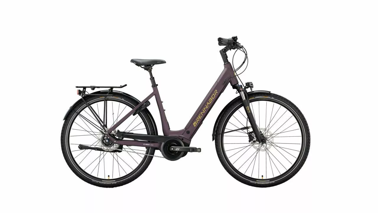 Ein modernes E-Trekkingbike im klassischen Look – das ist BRENNABORs T-63e. Optisch besticht es mit seinem schlichten Stil, denn der kräftige BOSCH Performance Antrieb fügt sich optimal in den Tretlagerbereich ein, und der reichweitenstarke 625-Wh-PowerTube-Akku verschwindet gleich vollständig im Unterrohr. Die Geometrie gibt die Sitzposition vor und die ist moderat-sportlich, aber dennoch bequem.<br><br>Beim Fahren unterstützt der Antrieb je nach Unterstützungsstufe angenehm, aber nie übermäßig kraftvoll bis 25 km/h. Über das Intuvia-Display lassen sich die Kräfte in vier Stufen einstellen, dazu sorgt die 5-Gang SHIMANO Nexus Nabenschaltung (mit Leerlauf) für die stets richtige Trittfrequenz. Damit auch das Abbremsen nicht minder kontrolliert abläuft, lassen sich die hydraulischen Scheibenbremsen ganz feinfühlig bedienen – und wenn es drauf ankommt, reagieren sie spontan bissig bis zum Stillstand.<br><br>Tourentauglich wird das Bike durch das Zusammenspiel von Federgabel, gefederter Sattelstütze und den gut dämpfenden breiten Reifen. Gerade auf Wald- oder Feldwegen ist das ein willkommener Komfort, den man nicht missen möchte. Das helle LED-Licht, die Schutzbleche wie auch der MIK-Systemgepäckträger komplettieren das T-63e zu einem modernen E-Trekkingrad im klassischen Look für alle alltäglichen Wegen und den Touren am Wochenende.