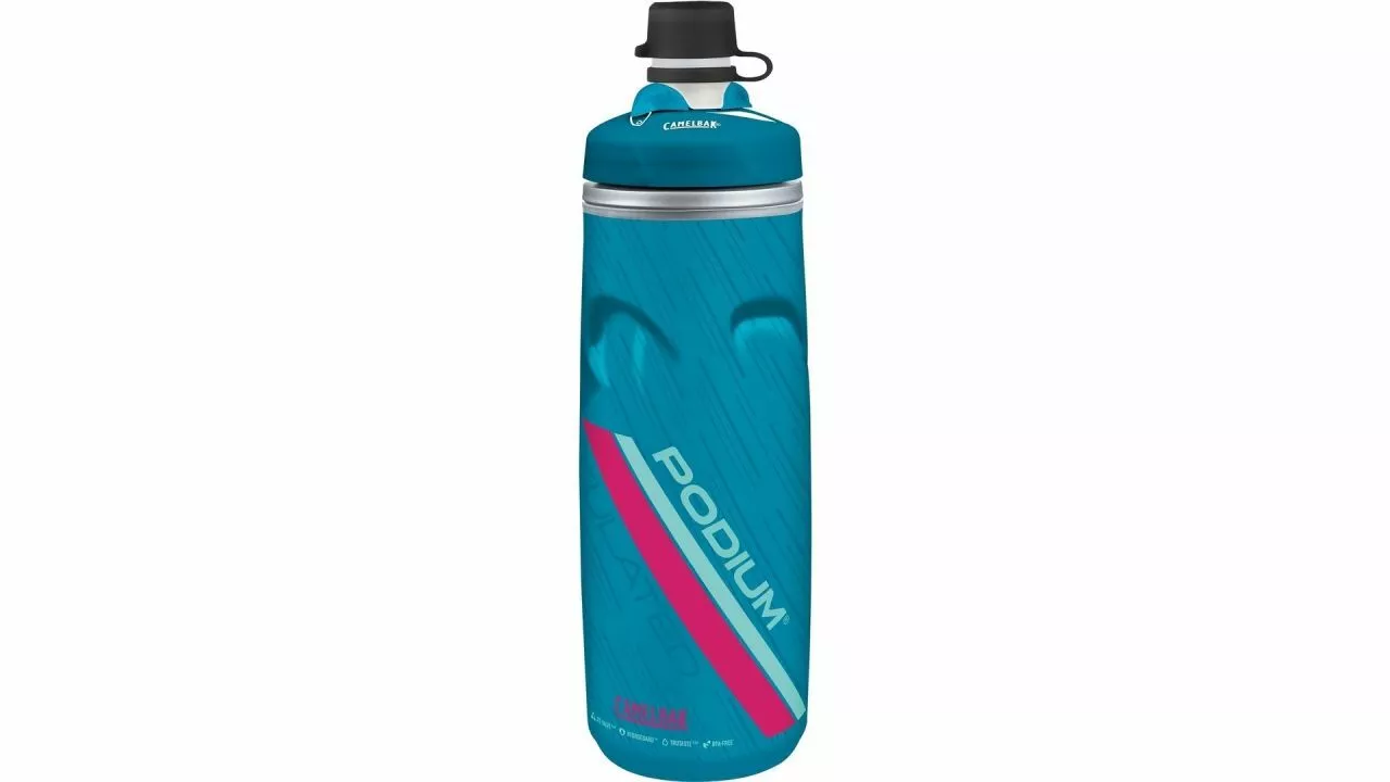 Unterwegs an heißen Tagen kommt die Trinkflasche Chill aus der Podium Dirt Series von CAMELBAK immer genau richtig. Sie hält die Getränke dank ihrer Doppelwandkonstruktion gleich doppelt so lange kalt. <br><br>Die ultimative Fahrradflasche für Hobby- wie Rennfahrer verfügt über eine praktische Staubkappe, die das Mundstück effektiv vor Schmutz schützt. Ebenso große Vorteile hat das selbstdichtende Ventil, das dank seines größeren Durchmessers einen hohen Durchfluss der Flüssigkeit ermöglicht. <br>Auch das Design dieser Trinkflasche von CAMELBAK kann sich sehen lassen: Es wurde besonders ergonomisch gestaltet und lässt sich leicht zusammendrücken.