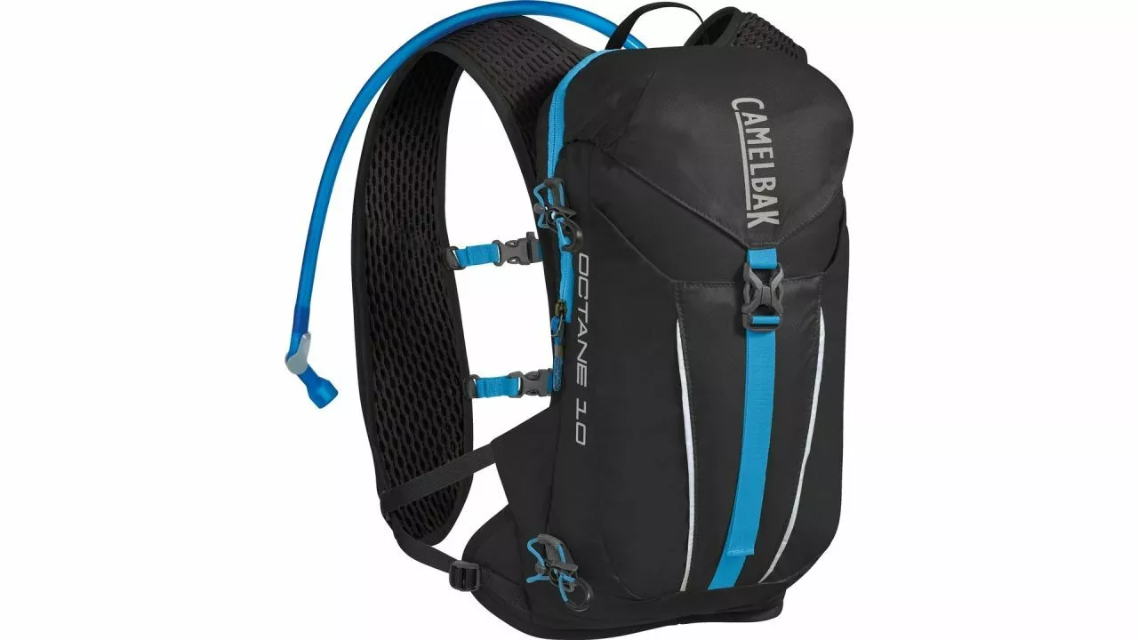 Der Octane 10 von CAMELBAK ist ein Trinkrucksack mit einem Packvolumen von acht Litern und einem zwei Liter fassenden Reservoir. Damit ist er ideal für kurze Wanderungen, die sportliche Feierabendrunde auf dem Bike oder beim Langstreckenlauf. Er ist aus atmungsaktivem und extrem leichten 3D Mesh gefertigt. Damit bringt er lediglich 370 g auf die Waage. <br><br>Die Hydroguard-Technologie verhindert, dass sich Bakterien in der Crux-Trinkblase und im Schlauch ausbreiten können. Außerdem sind die Teile frei von Weichmachern. Das Big Bite Ventil ermöglicht schnelles Trinken: einfach draufbeißen und los! Das Mundstück ist selbstschließend und verhindert lästiges Tropfen. <br><br>Weitere Details sind eine Signalpfeife, ein verstellbarer Doppelbrustgurt, der mit dehnbaren Seitentaschen genügend Stauraum für Verpflegung und Ausrüstung bietet. Am Rucksack befinden sich weitere Stretch-Außenfächer sowie eine sichere Handytasche. Für ordentliche Gepäckverteilung sind ein integriertes Organizer-Fach und eine spezielle Befestigungsmöglichkeit für Trekkingstöcke da. <br><br>CAMELBAKs Octane 10 ist für Menschen mit einer Oberkörperlänge von 43 bis 53 cm sowie einem Brustumfang von 71 bis 116 cm geeignet.