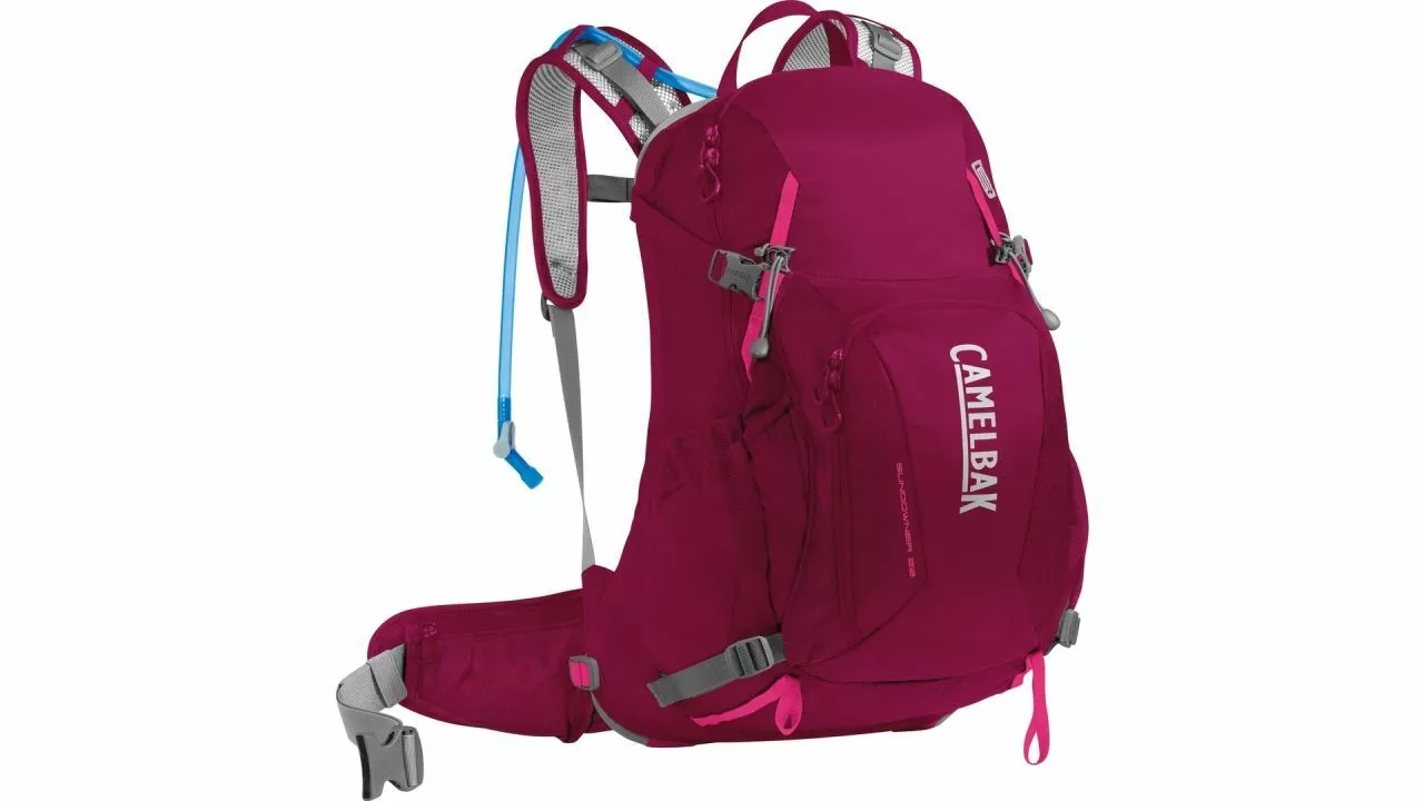 Um hoch zu kommen, muss man manchmal zunächst nach unten gehen. Der Trinkrucksack Sundowner LR 22 von CAMELBAK verfügt über einen Beckengurt, der die Last von den Schultern auf die Hüfte verlagert. Das Ergebnis: ein niedrigerer Schwerpunkt, der auf steilen, technischen Trails mehr Stabilität und besseren Halt bietet. <br><br>Der Sundowner ist so gebaut, dass er alles enthält, was man für eine anstrengende, tagelange Wanderung benötigt: So zum Beispiel Taschen, um Dinge wie Schlüssel, das Portemonnaie und das Handy sicher zu verstauen, ein Stretch-Fach für feuchte oder verschwitzte Kleidung und eine Trekkingstock-Befestigung. <br>Das frauenspezifische Design verfügt zudem über ein kürzeres Rückenteil und höhenverstellbare Gurte, die eng anliegen, ohne die Brust zu quetschen.