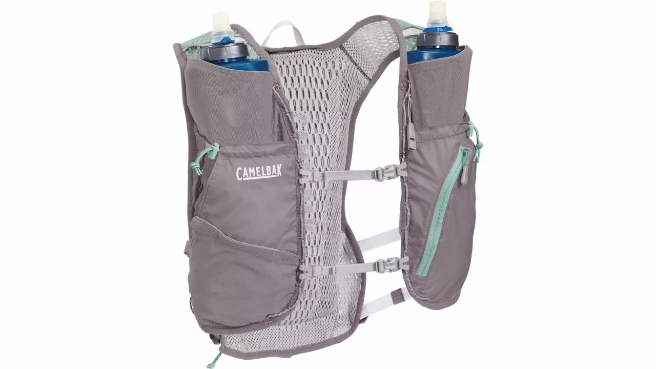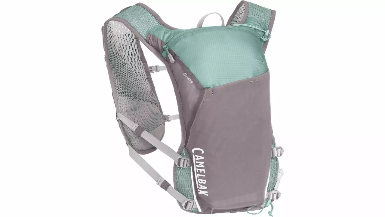 Ob nun zu Fuß oder auf dem Bike die Zephyr Vest von CAMELBAK ist eine minimalistische Trinkweste für Trainingseinheiten auf dem Trail. Flaschenhalter an den Schultergurten bieten Platz für zwei Quick Stow Flask Flaschen à 500 ml. <br><br>Die antimikrobakterielle Weste ist aus innovativem Strick-Mesh gefertigt und mit einer Signalpfeife ausgestattet. Das Packvolumen von zehn Litern bietet reichlich Platz für Verpflegung und Ausrüstung. Weitere Verstaumöglichkeiten bieten Stretch-Außenfächer. Außerdem gibt es eine sichere Handytasche und Trekkingstock-Befestigungen.<br><br>Mit all den Details kommt die Weste auf ein Fliegengewicht von 200 g. Geeignet ist sie für Frauen mit einem Brustumfang von 61 bis 127 cm.