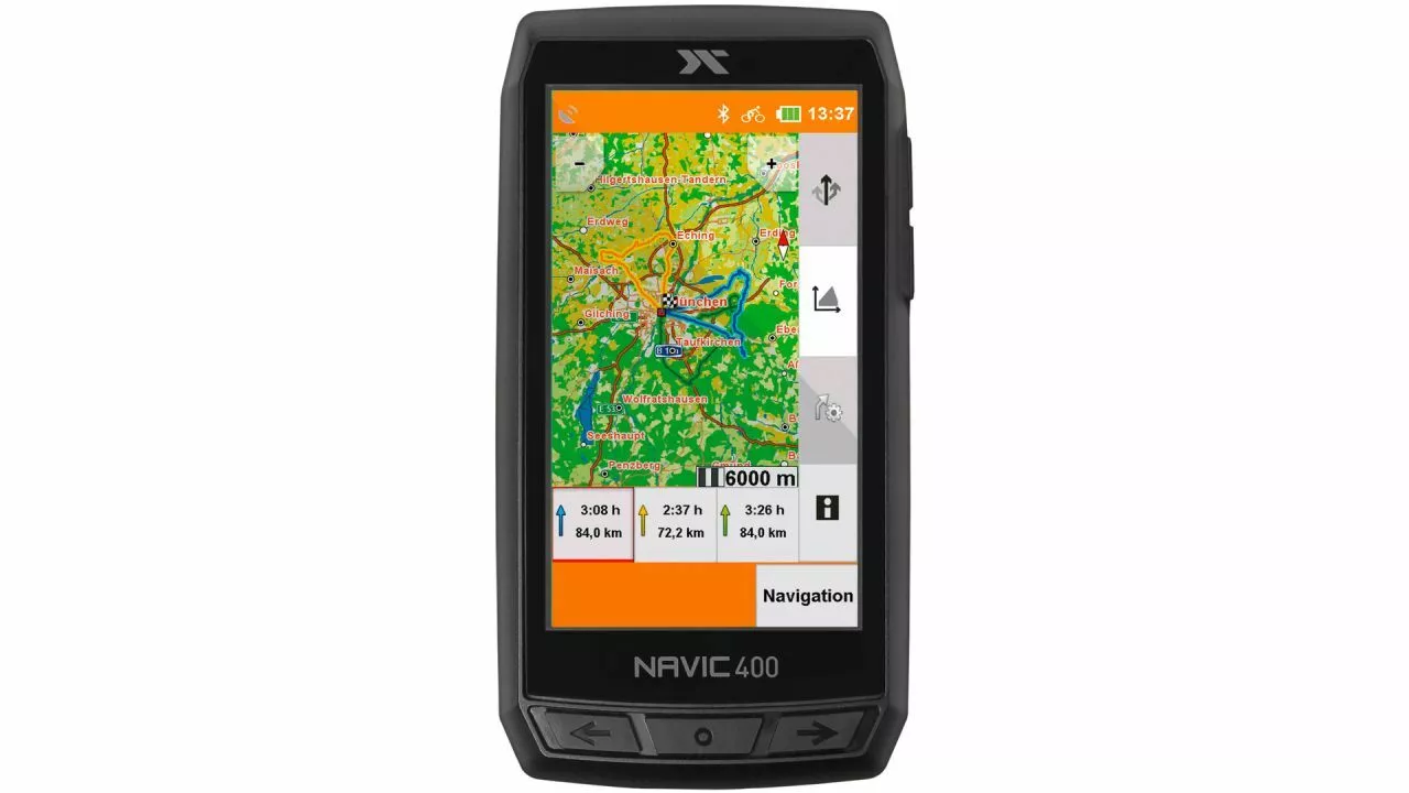 Mit dem GPS-gesteuerten Outdoor-Navi Navic 400 gelangst du garantiert niemals auf die falsche Fährte. Die intuitive Fahrrad- und Outdoor Navigation lässt sich kinderleicht bedienen und dank des großen 4-Zoll-Displays hast du deine Karten jederzeit übersichtlich im Blick. Mit tollen Features, wie individuellen Tourenvorschlägen, dem integrierten Wandermodus oder der Offline Outdoor Navigation wird hier jede Tour zum ultimativen Abenteuer. <br><br>Schon der erste Blick auf das CICLO SPORT Navic 400 wird dich begeistern: Das 4 Zoll Display mit druckempfindlichem Touchscreen zeigt dir sogar bei diffusem Licht exakt, wie deine Route verläuft. Aber das ist noch lange nicht alles, denn das Display zu konfigurieren ist kinderleicht genau nach deinen Vorlieben. Reine Navigationsfunktion, Kombi-Anzeige mit Geschwindigkeit oder verbleibender Wegstrecke, die Einstellung geht kinderleicht und absolut intuitiv. Ob man tagsüber ins Büro pendelt, abends eine Runde auf deinem Lieblingstrail drehen, oder am Wochenende eine lange Tour unternehmen, mit minimalem Aufwand und ganz intuitiv konfigurierst du das Display auf dein jeweiliges Bedürfnis. Das kompakte Gerät ist natürlich auch auf Wanderungen ein idealer Begleiter. Aktiviert man die Navigationsfunktion, zeigt ein großer Pfeil permanent die Richtung sowie kommende Richtungswechsel an. Im puren Navigationsmodus sieht man einen scharfen und gut lesbaren Kartenausschnitt vor sich, der alle wichtigen Details in der Umgebung zeigt – deutlicher Richtungspfeil inklusive.