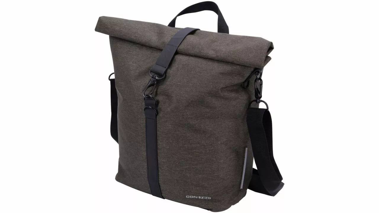Kurz in die Stadt zum Schaufensterbummel? Die CONTEC LIM Single ist dabei! In schlichtem, zeitlosem Design bietet sie mit ihrem 17-Liter-Volumen genügend Platz für eine Wasserflasche und Regenjacke. Und auch für die ein oder andere Errungenschaft aus einer Boutique.<br><br>Für den Weg in die Stadt kannst du die Shoppertasche dank des integrierten Fahrradhakens leicht am Gepäckträger fest machen. Zum Schlendern nimmst du sie genau so leicht wieder ab und kannst sie mit dem Tragegurt lässig über der Schulter tragen. <br><br>Damit deine Sachen trocken bleiben, ist die Tasche aus wasserabweisendem Polyester gefertigt. Verschließen kannst du sie mit einem Karabinerhaken über den Rollverschluss, der auch beim Wasserabweisen unterstützt. Reflexapplikationen machen dich im Straßenverkehr sichtbarer, wenn du abends wieder nach Hause fährst.