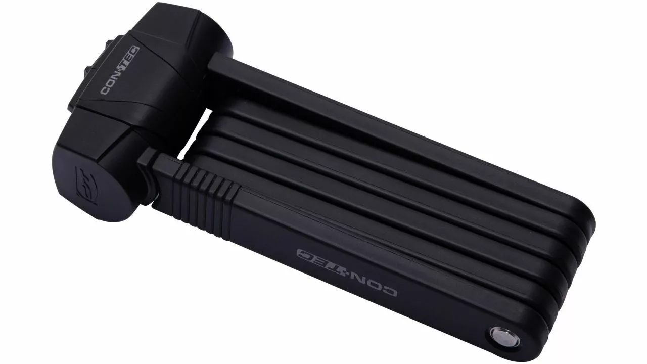 Lang und kompakt zugleich: Das neue CONTEC Faltschloss Sherlock ist entfaltet 85 cm lang und passt so um die meisten Straßenlaternen und Fahrradständer. In der Halterung am Fahrrad ist es auf 20×8,5×4 cm komprimiert und fügt sich ganz elegant in die Optik des Fahrrads an. Neben den optischen Vorteilen überzeugt das Sherlock aber vor allem mit den robusten Stäben aus Tredur-Spezialstahl, dem präzisen In-X-Schließsystem und den starken Gelenkbolzen. Bedienkomfort bringen das Wendeschlüssel-System und die Schlüssel-Wegfallsperre oder die Staubkappe für dauerhaften Gebrauch. Das Sherlock wiegt 1,1 kg.