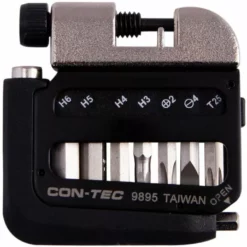 Werkzeug für das Fahrrad darf besonders auf längeren Touren nicht fehlen. Das CONTEC Multifunktionswerkzeug Pocket Gadget – PG1 passt dank seines flachen und kompakten Designs in jede Tasche und steht immer direkt zur Verfügung. Es wiegt nur 102,5 g, wartet aber mit satten 8 Funktionen auf, darunter 3/4/5/6 mm Innensechskantschlüssel, Schlitz- und Kreuzschraubendreher, Innensechsrund-Schlüssel T25 sowie ein Kettennietdrücker. Mit diesem Multitool sind Profis und Hobbyfahrer jederzeit gut ausgestattet.
