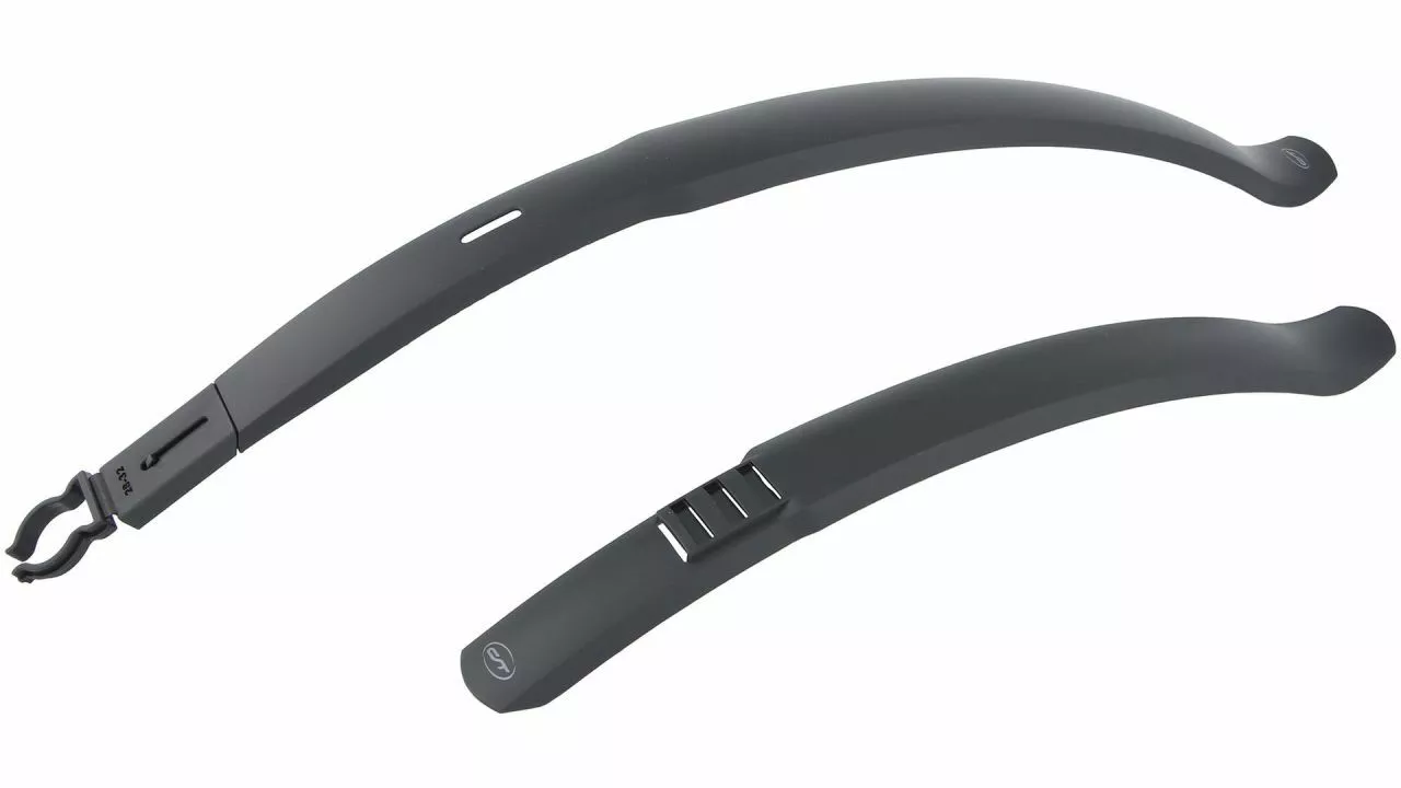 Schutzbleche sorgen für saubere Kleidung auf schmutzigen Pisten. Die CONTEC Steckradschutzgarnitur Trekking bietet mit Breiten von 28 bis 32 mm sowie 32 bis 36 mm zuverlässigen Schutz an Fahrrädern mit Laufrädern von 24 bis 28. Das Kunststoff-Schutzblech für das Vorderrad lässt sich an der Gabelbrücke montieren, während das Hinterrad-Schutzblech an der Hinterbaustrebe angebracht wird.<br><br>Mit 2 Clipadaptern kann das hintere Schutzblech zusätzlich am Sattelrohr festgeklammert werden. Dieses ist um bis zu 33 mm in der Länge verstellbar. Die flexiblen Schutzbleche in Schwarz ergänzen jedes Trekkingrad.