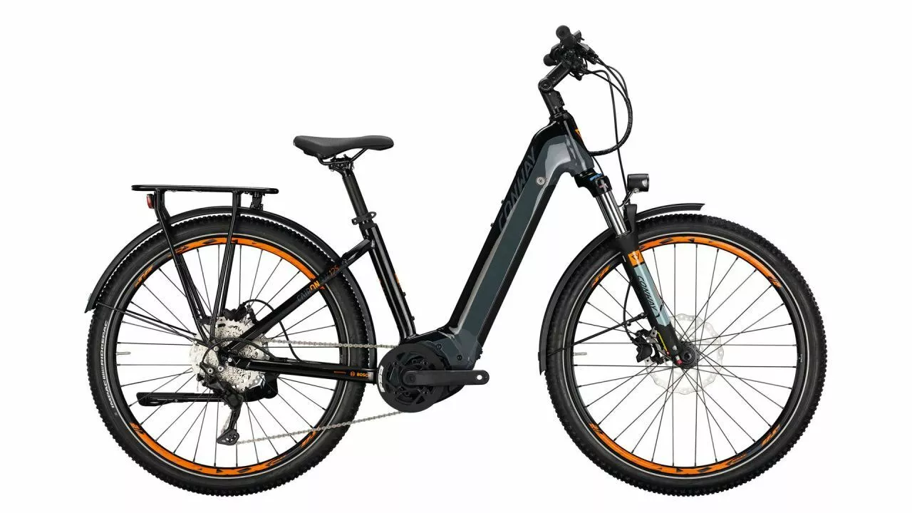 Das Cairon SUV 125 verbindet unter der Bezeichnung SUV viel Fahrkomfort und einfaches Handling in jedem Gelände. Die Ziffernfolge 125 bezieht sich einmal nicht auf Güte und Laufradgröße, sondern auf das Firmenjubiläum des Herstellers, die Hermann Hartje KG. <br><br>Komfort zum guten Preis-Leistungs-Verhältnis gibt es beim Jubiläumsmodell schon beim Aufsteigen. Der Wave-Rahmen erlaubt den tiefen Einstieg, der Antrieb das mühelose Dahingleiten bis 25 km/h. Der 500-Wh-Akku verschwindet dabei komplett im Unterrohr, der kräftige Performance CX Motor von Bosch schließt sich im Tretlagerbereich harmonisch an. Zur ansprechenden Optik trägt auch der Gepäckträger mit bei. Seine Haltestrebe verläuft unter dem Schutzblech, was die aufgeräumte Optik mit prägt und das Blech gleich mit hält. <br><br>Damit sich das SUV tatsächlich in jedem Gelände zu Hause fühlt, bietet seine Federgabel 100 mm Federweg. Mit viel Volumen die breiten Reifen auch die feinen Unebenheiten, dazu sind sie mit ihrem Profil natürlich sowohl für den on- als auch den offroad-Einsatz ausgelegt. Und sicher zum Stehen bringen die hydraulischen Scheibenbremsen von Tektro das Rad in jeder Situation. <br><br>Komplett alltagstauglich ist das Cairon SUV 125 mit dem stabilen Gepäckträger, den weitgreifenden Schutzblechen sowie der hellen Lichtanlage. <br>