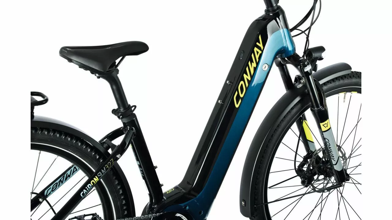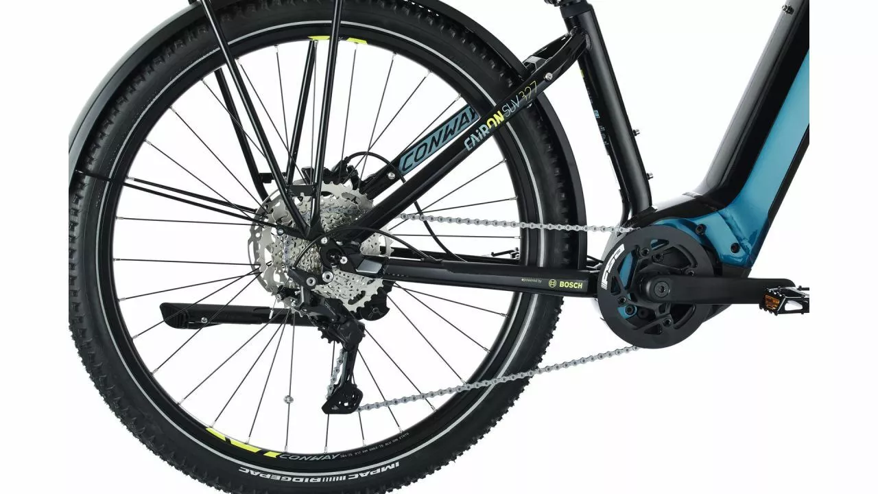 CONWAY beschreibt seine neuen Cairon SUV nach der vielseitigen aber überzeugenden Formel Einfacher Einstieg + Einfaches Handling = Komfort auf allen Wegen + Maximales Fahrvergnügen + Immer sicher unterwegs.<br><br>Der einfache Einstieg ist beim Cairon SUV 327 schon mit dem Wave-Rahmen gegeben, durch den man das eine Bein einfach in den Rahmen bekommt. Fürs einfache Handling ist praktisch das gesamte Rad zuständig. Angefangen bei der zuverlässigen und ruhigen Fahrweise des Rahmens. Sein Hauptrahmenrohr nimmt auch gleich den PowerTube-Akku komplett auf. Der Akku lässt sich nach unten hin entnehmen. Zum Laden bietet der Rahmen auf der linken Seite aber auch eine Ladebuchse. Mit den vier Unterstützungsstufen des kräftigen Bosch Performance CX Motors und den 1 x 10 Gängen der Shimano Deore Kettenschaltung lässt sich die Unterstützung bis 25 km/h einfach einteilen. <br><br>Um unterwegs auch auf unbefestigten Wegen beste Fahrperformance und den Komfort auf allen Wegen zu haben, sind die Reifen dafür fein profiliert und dämpfen gemeinsam mit der 100 mm Federgabel auch den Untergrund von Feld- und Waldwegen wie Kopfsteinpflaster gut ein. Und um das Tempo bei allem Fahrspaß soweit wie nötig zu reduzieren, lassen sich die Bremskräfte der hydraulischen Scheibenbremsen von Tektro immer leicht und feinfühlig einteilen. <br><br>Mit der vollen Ausstattung mit Schutzblechen und Licht ergibt sich so das maximale Fahrvergnügen und stets sichere Fahrt. <br>