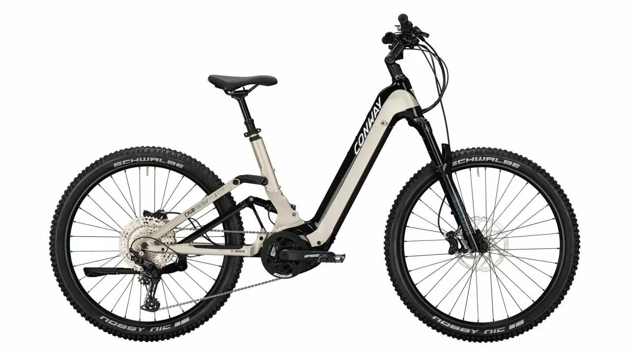 Einfacher Einstieg und mit unheimlich viel Komfort durch jedes Gelände! Das ist der Gedanke, der hinter dem neuen Cairon SUV FSX 527 von CONWAY steht. <br><br>Der technische Clou ist der Rahmen, der trotz des tiefen Einstiegs voll gefedert ist, also neben der Federgabel auch einen Dämpfer, der den Hinterbau komplett abstützt. Damit erhöht sich der Fahrkomfort abseits befestigter Wege enorm: Stöße vom Untergrund kommen erst gar nicht beim Fahrer an, was wiederum weitaus entspannender unterwegs ist. <br><br>Gleichzeitig nimmt es das SUV locker mit unwegsamen Gelände auf. Die 60 mm breiten Schwalbe Nobby Nic sind mit ihrem Stollenprofil schließlich bewährte Mountainbike-Reifen und die richtige Wahl für lockeren Waldboden und Schotterpassagen. <br><br>Zu den vier Unterstützungsstufen des Motors kommt die 1 x 11-fach Shimano Deore Kettenschaltung hinzu, womit sich jederzeit die gewünschte Trittfrequenz einstellen lässt. Von der Mountainbike-DNA stammen auch die hydraulischen Scheibenbremsen. Mit ihren 4 Kolben lassen sich starken Bremskräfte der Tektro-Bremsen feinfühlig einteilen. Schließlich ist das Cairon SUV FS X 527 ein komfortabler und sportlicher Allrounder, mit dem es sich auch da sicher fahren lässt, wo die Straße aufhört. <br>