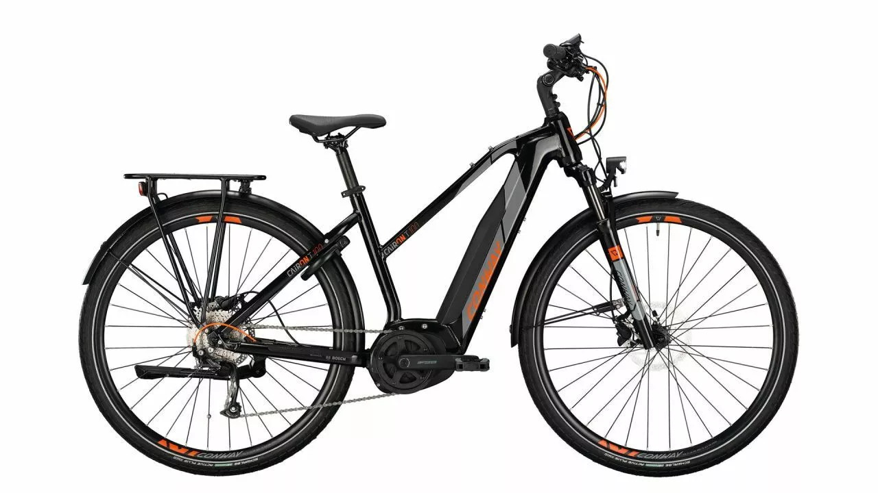 Das Cairon T 100 500 von CONWAY ist der solide Einstieg fürs E-Bike fahren im Alltag und auf Tour. Auf den vielseitigen Einsatz ist das überarbeitete E-Bike Pedelec ausgerichtet. Dabei unterstützt der Elektro-Antrieb beim Pedalieren bis 25 km/h mit voller Kraft voraus der Performance Antrieb von Bosch beschleunigt kräftig!<br><br>Dazu erhält der Antrieb seine Energie aus dem 500 Wh Akku, den das Cairon T 100 500 elegant in das Unterrohr integriert. Und über den sich der Akku einfach aus dem Rad entnehmen lässt. Mit dem darunter platzierten Motor wirkt das Cairon T 100 500 mehr wie ein kräftiges Tourenrad oder eben wie ein modernes Trekking-Pedelec, das sich auf die Integration seiner Teile versteht. So bilden auch der Gepäckträger und das hintere Schutzblech eine Einheit die obere Haltestrebe des Trägers verläuft unter dem Schutzblech von SKS, hält es so mit und sorgt nebenbei für die aufgeräumte Optik des gesamten Rads. <br><br>Seiner Hauptaufgabe wird der Gepäckträger natürlich ebenso gerecht, indem er Packtaschen für Touren, den Ausflug zum Badesee oder die Einkäufe ganz stabil mitnimmt.<br><br>Beim Antrieb hilft der 1×9-fach Kettenschaltungs-Antrieb von Shimano, und beim punktgenauen Abbremsen die überaus zuverlässigen BR-MT200 hydraulischen Scheibenbremsen, ebenfalls von Shimano. Nicht zuletzt sind die 50 mm breiten Schwalbe Energizer Active Plus Reifen extra für solch zuverlässige Einsteiger-Pedelecs wie das Cairon T 100 500 gemacht.<br>