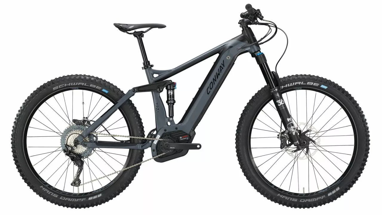 Grip satt und Komfort stehen bei den Bikes der eMF-Serie klar im Vordergrund. Für den Komfort ist das hochwertige RockShox-Fahrwerk mit 140 mm Federweg zuständig.<br><br>Unterstützt wird es dabei von der großvolumigen 2,8-Plus-Bereifung, die auch schon kleine Unebenheiten abfangen. Zusätzlich bieten sie noch wesentlich mehr Grip als normale Reifen. So ist das Bike in jedem Terrain gut kontrollierbar. Um auch schwieriges Gelände sicher zu meistern, wurde die neue Vario-Sattelstütze Drop-A-Gogo von CONTEC verbaut. Die absenkbare Stütze bietet mit 150 mm Hub genügend Spielraum, um sich frei auf dem Bike zu bewegen.<br><br>Das Herzstück des eMF 727 bildet der Mittelmotor Performance CX von Bosch. Mit 75 Nm Drehmoment bei 250 W Leistung ist dieser hochwertige Antrieb einer der stärksten E-Bike-Motoren auf dem Markt. Damit dieser dich unterwegs auch zuverlässig unterstützen kann, ist ein Akku mit 500 Wh Kapazität verbaut.<br><br>Sicher zum Stehen kommt das eMF 727 Plus mit Hilfe einer hydraulischen 4-Kolben-Scheibenbremse von Shimano. Große Bremsscheiben mit 203 mm Durchmesser sorgen nochmal für zusätzliche Bremspower.<br><br>CONWAY bietet mit dem eMF 727 Plus ein sehr komfortables Bike mit sportlicher Bergab-Orientierung an. Mit diesem Bike hast du auf jedem Trail alles sicher im Griff. Teste die Grenzen aus, für das eMF 727 Plus gibt es kaum welche.