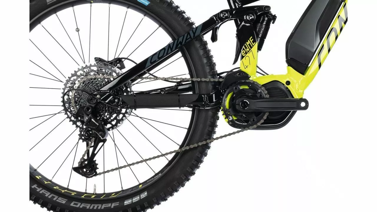 Das eWME 427 von CONWAY ist das Einstiegsmodell bei den E-Enduros der We Make Enduro- Modellreihe. Für kompletten Abfahrtsspaß auf schnellen Enduro-Kursen. Mit leistungsfähigem Fahrwerk, kraftvollem Shimano-Motor und agiler Fahrweise. Dazu mit geringem Gewicht und einer ausgewogenen Mischung aus Wendigkeit und Laufruhe.<br><br> Um anständig anspruchsvolle Abfahrten herunterzukacheln, bietet das eWME 427 agile 27,5''-Laufräder mit Schwalbe Magic Mary vorne und Hans Dampf hinten und vor allem ein potentes Fahrwerk mit Rockshox 35 Gold RL mit 160 mm Federweg und Monarch RT3 Dämpfer. Damit und mit dem breiten CONWAY Lenker und der ausbalancierten Geometrie mit kurzen Kettenstreben fühlt sich das E-Fully auf technisch anspruchsvollen Abfahrten sowie in engen Spitzkehren wie zuhause. <br><br> Den im wahrsten Sinne einfachen Fahrspaß gibt ebenfalls die 1×12-fach SRAM Eagle-Schaltung. Um auf den Punkt genau in der Abfahrt Tempo herauszunehmen, ist das eWME 427 mit Shimanos bissiger 4-Kolben-Bremse BR-MT400 mit 203 mm Scheibendurchmesser bestückt. <br><br> Bergauf kurbelt das eWME 427 potent mit seinem kraftvollen Shimano E8000 Antrieb mit 250 W Nennleistung und 504-Wh-Akku-Kapazität. Die passende Sitzposition bergauf- und bergab liefert dazu die absenkbare Sattelstütze Drop-A-Gogo von CONTEC mit Fahrspaß bergab und souverän bergauf: den Spagat schafft das CONWAY WME 427 spielerisch zum Einstiegspreis.