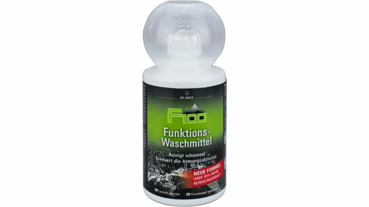 Spezielle Reinigung und Pflege für deine Funktionskleidung gefällig? Das flüssige F100 Spezialwaschmittel von DR. WACK ist für alle Funktionstextilien und Leder geeignet. Seine Reinigungskraft bekämpft sowohl Bakterienrückstände von schweißtreibenden Touren als auch hartnäckigen Schmutz. Laut Hersteller soll die neue Formel 30 Prozent stärker reinigen. <br><br>Das Mittel erneuert die Atmungsaktivität von Klimamembranen wie Goretex und Sympatex und bereitet die Fasern optimal auf die anschließende Pflege mit dem F100 Imprägnierspray vor. Die Fasern können die Pflegestoffe besser aufnehmen. DR. WACK hat der Verpackung eine praktische Waschkugel für leichtes Dosieren und sauberes Handling beigefügt.