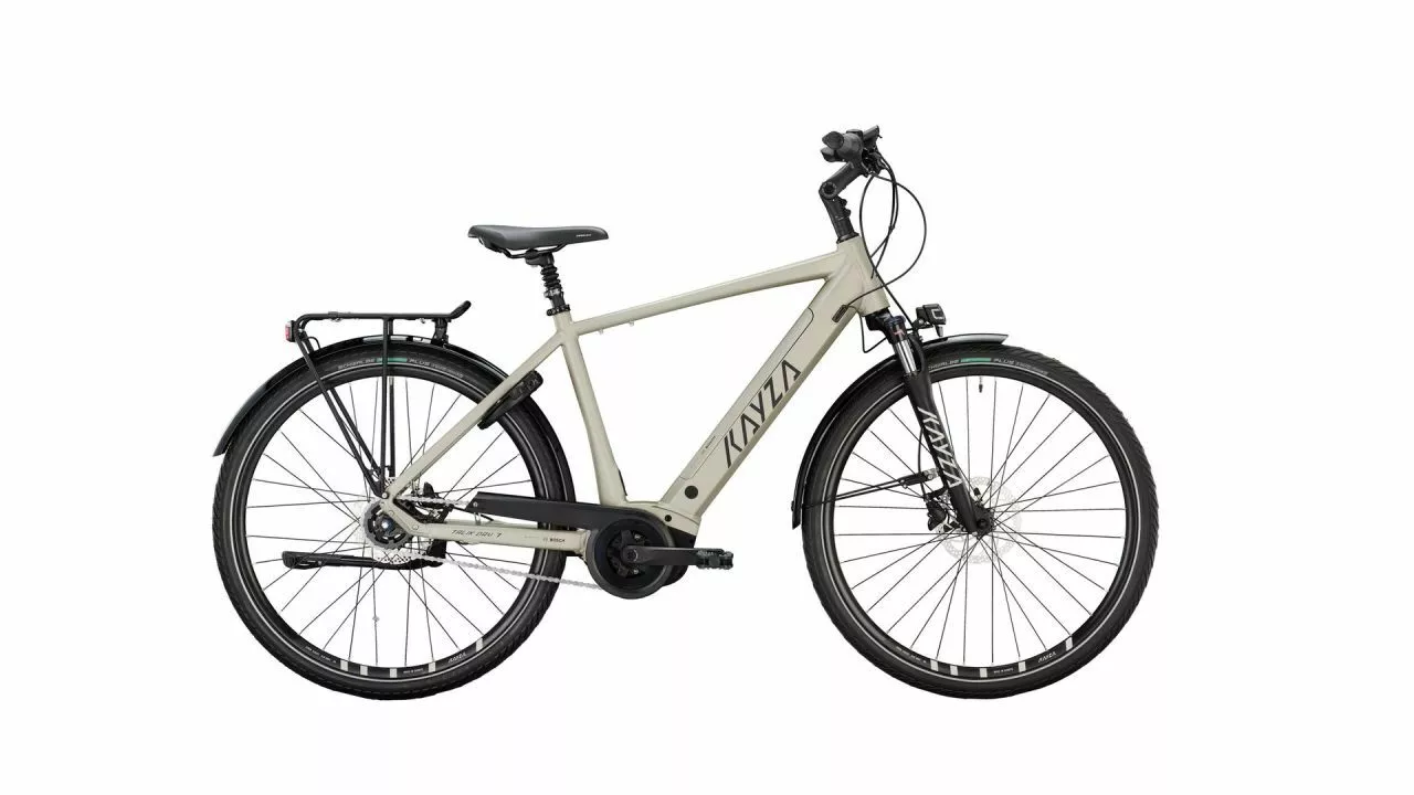 Das Talik Dry 7 von KAYZA ist ein Trekking-E-Bike für jede Gelegenheit im Alltag wie auf Touren. Mit der Nabenschaltung und dem BOSCH Performance Motor steckt in diesem Bike die ideale Kombination für lange Touren, da es wartungs- und verschleißarm ist, gleichzeitig auch reichweitenstark.<br><br>Die Rahmen-Geometrie gibt eine gemäßigt sportliche Sitzposition vor, die sich eben auch bei allen Gelegenheiten gut macht. Und das immer mit dem dauerhaften Rückenwind bis 25 km/h vom ausgewogenen BOSCH Performance Antrieb mit dem reichweitenstarken 625-Wh-PowerTube-Akku, den der Rahmen komplett im Unterrohr aufnimmt. Das Bike wirkt optisch klar und aufgeräumt. <br><br>Bei der aufgeräumten Optik spielt auch der Gepäckträger eine Rolle. Da dessen obere Haltestrebe unterm Schutzblech verläuft, und dieses gleich mithält, ergibt sich im Heck eine ebenso aufgeräumte Optik. An den Gepäckträger passen zwei Radtaschen für den großen Einkauf oder das Tourengepäck für Wochenendausflüge.<br><br>Damit sie ihre Stärken optimal ausspielen kann, lässt sich die Federgabel auf das individuelle Fahrergewicht einstellen. Zusammen mit den SCHWALBE Reifen dämpft sie ordentlich auf Wegen fernab des Asphalts wie auf Kopfsteinpflaster in der Innenstadt. Die hydraulischen Scheibenbremsen sind ebenso immer zur Stelle – die SHIMANO BR-MT 200 können kräftig zupacken – auch bei Nässe. Auf langen Abfahrten lassen sie sich fein dosieren und stets leichtgängig bedienen.<br><br>Abgerundet wird das Touren-E-Bike mit einer Klingel, hellem LED-Scheinwerfer und Rücklicht, allen Reflektoren sowie den langen Schutzblechen, die zuverlässig Schmutz und Spritzwasser abhalten. Dafür steht übrigens auch das Wort Dry – trockene Hosenbeine, immer und überall.<br>