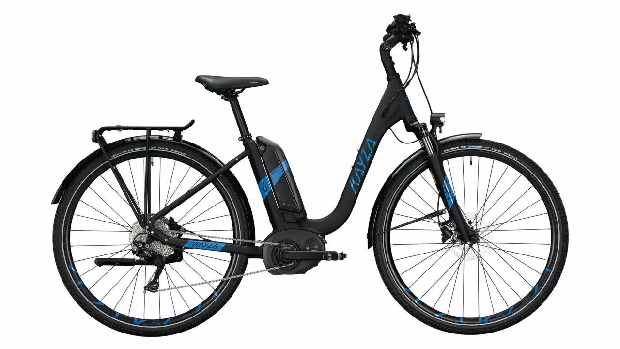 Das Tanana Dry 6 von KAYZA ist ein komplettes Trekking-E-Bike für alle Gelegenheiten, sowohl für den Alltag als auch für die ausgedehnte Tour. Immer mit dem dauerhaften Rückenwind bis 25 km/h vom Bosch Performance Mittelmotor mit 500 Wh Akku. Und immer in angenehm komfortabler Sitzposition des Tiefeinsteiger-Rahmens. <br><br>Motor und Akku fügen sich harmonisch in das Gesamtbild des schlanken und kantigen Alu-Rahmens ein. Bei der aufgeräumten Optik spielt auch der Gepäckträger eine Rolle. Da dessen obere Haltestrebe unterm Schutzblech verläuft und dieses gleich mithält, ergibt sich auch im Heck eine aufgeräumte Optik. An den Gepäckträger passen zwei Radtaschen für den großen Einkauf oder die Tourenausstattung für die Wochenendtour oder an die Klappe kleine Dinge zwischendurch. <br><br>Aufs Fahrergewicht lässt sich die Federgabel von SR Suntour anpassen, die einen guten Teil zur Offroad- und Kopfsteinpflaster-Tauglichkeit des Bikes beiträgt und die sich per Lockout auch abstellen lässt. für glatte. Ebenso funktionieren die Schwalbe Marathon GT Tour sowohl auf Asphalt oder Kopfsteinpflaster als auch auf Feldwegen. Ob nun in der Stadt oder auf langen Abfahrten unterwegs – die hydraulischen Scheibenbremsen Shimano BR-MT 200 packen auch bei Nässe kräftig zu und lassen sich jederzeit leichtgängig bedienen.<br> <br>Mit langen Schutzblechen, Klingel und dem Gepäckträger sowie allen Reflektoren und dem hellen LED-Licht wird das Tanana Dry 6 komplett alltags- und tourentauglich.