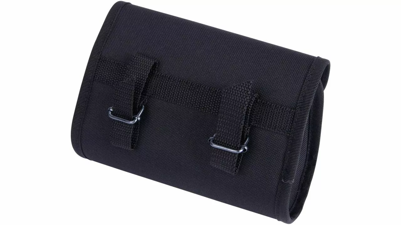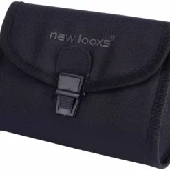 Diese Satteltasche von NEW LOOXS besteht aus wasserabweisendem Polyester. Sie lässt sich einfach mit den Riemen am Sattel befestigen. <br>Geschlossen wird die Fahrradtasche mit einer Einsteckschnalle.
