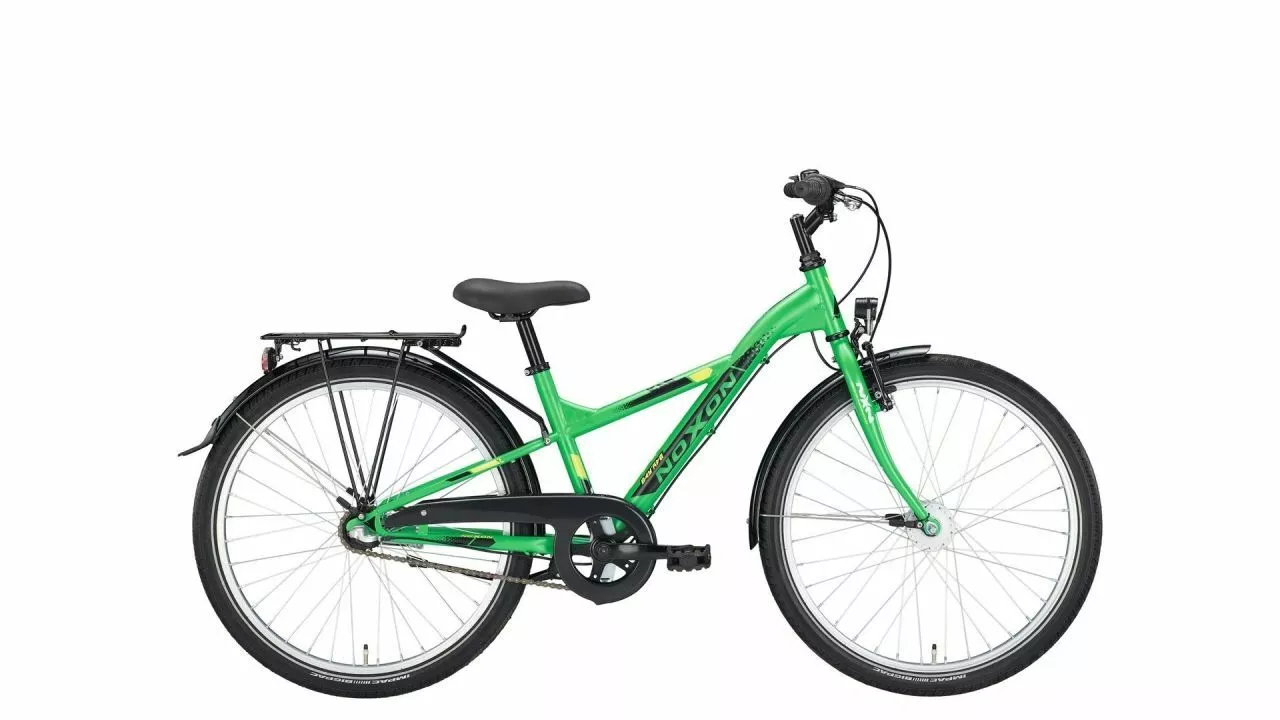 Modern in der Rahmenform, alltagstauglich und vielseitig in der Ausstattung: Das NOXON Skipper ND gibt es bei drei Laufradgrößen in vier Rahmenhöhen – 20 (30 cm Rahmenhöhe), 24 (34 cm) und 26 (38 cm und 44 cm) – und dazu mit drei Gangschaltungs-Varianten: 3- und 7-Gang-Nabenschaltung sowie 21-Gang Kettenschaltung jeweils von Shimano. Bei der Rahmenfarbe gibt es die Wahl zwischen black matt und ginstergreen matt. <br><br> Dazu bietet es eine praktische wie straßenverkehrstaugliche Ausstattung. Angefangen bei der Lichtanlage mit LED-Scheinwerfer, Nabendynamo und Rücklicht mit Standlichtfunktion. Klingel, alle Reflektoren und die zwei Bremsen gehören selbstverständlich dazu. Bei den Nabenschaltungsvarianten hat das Skipper ND eine Rücktrittbremse, bei der Kettenschaltung bremst es mit V-Bremsen vorne und hinten. Auch der Rahmen des Skipper ND bietet praktisch eine straßenverkehrstaugliche Form: er gibt eine angenehm aufrechte Haltung vor, die den Überblick über alles gewährleistet, was so vor dem Vorderrad passiert. <br><br> Praktisch sind dazu die Schutzbleche, die gut rollenden und dämpfenden Reifen und der Gepäckträger mit Federklappe – für alle Alltagsfahrten und die Ausflüge mit der ganzen Familie.