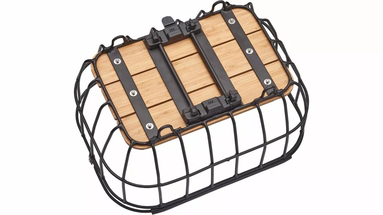 Der Boden des Bask-it Breeze ist aus wind- und wetterfestem Bambus. Darüber hinaus hat der luftige Aluminiumkorb ein Transportvolumen von 25 l, einen gummierten Tragegriff und natürlich auch einen vormontierten Snap-it-Adapter.