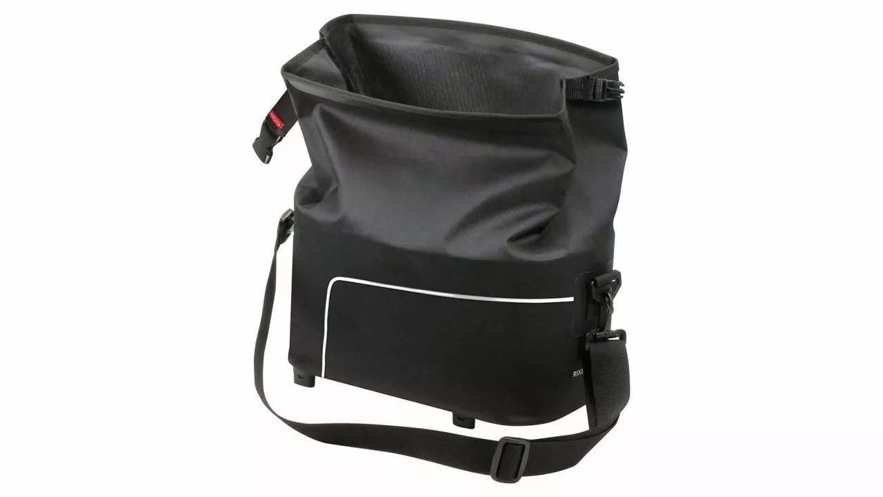 Der grundlegende Vorteil einer Rackpack-Tasche ist, dass man seine Tourenausrüstung aus angenehmer Höhe immer griffbereit hat – einfach auf Gepäckträgerhöhe und immer leicht zugänglich durch den großen Deckel. Die Rackpack Waterproof von RIXEN & KAUL ist darüber hinaus auch noch wasserdicht und somit die richtige Tasche für anspruchsvolle Touren. <br>Wasserdicht ist sie dank der verschweißten Nähte und dem Rollverschluss. Im Innern ist das Hauptfach mit Stoff ausgekleidet und ihr Boden gepolstert. Dazu gibt es eine Innentasche zum Sortieren von Wertsachen oder Unterlagen. <br>Wenn der Rollverschluss geschlossen ist, bildet er einen praktischen Tragegriff. Für längere Stadtbummel lässt sich die Tasche auch schultern. Die Rackpack Waterproof hat die Maße 17 x 32 x 18 cm und bietet einen Stauraum von 10 l Volumen. Sie kann bis zu 6 kg tragen.