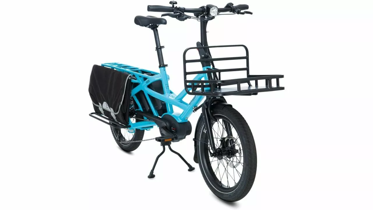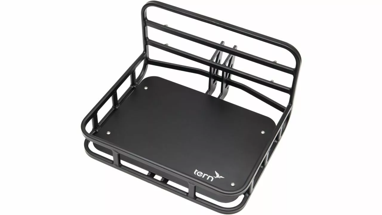 Das Transporteur Rack ist eine zusätzliche Ladefläche von TERN, die sich am Steuerrohr über dem Vorderrad montieren lässt. Auf der 300 x 400 mm Ladefläche passt zum Beispiel eine Getränkekiste oder eine entsprechend große Euro-Transportkiste für den größeren Einkauf oder etwa auch eine Kühlbox. Der Frontgepäckträger verträgt Lasten bis zu 20 kg und ist die willkommene Ausweich-Ladefläche für Ausflüge, wenn hinten am TERN GSD schon zwei Kinder sitzen. Mit dabei sind zwei praktische, nach hinten gerichtete Flaschenhalter für die längere Tour. Das Transporteur Rack wird am Rahmen montiert, was einfach besser für das Lenkverhalten des GSD bei schweren Lasten ist.