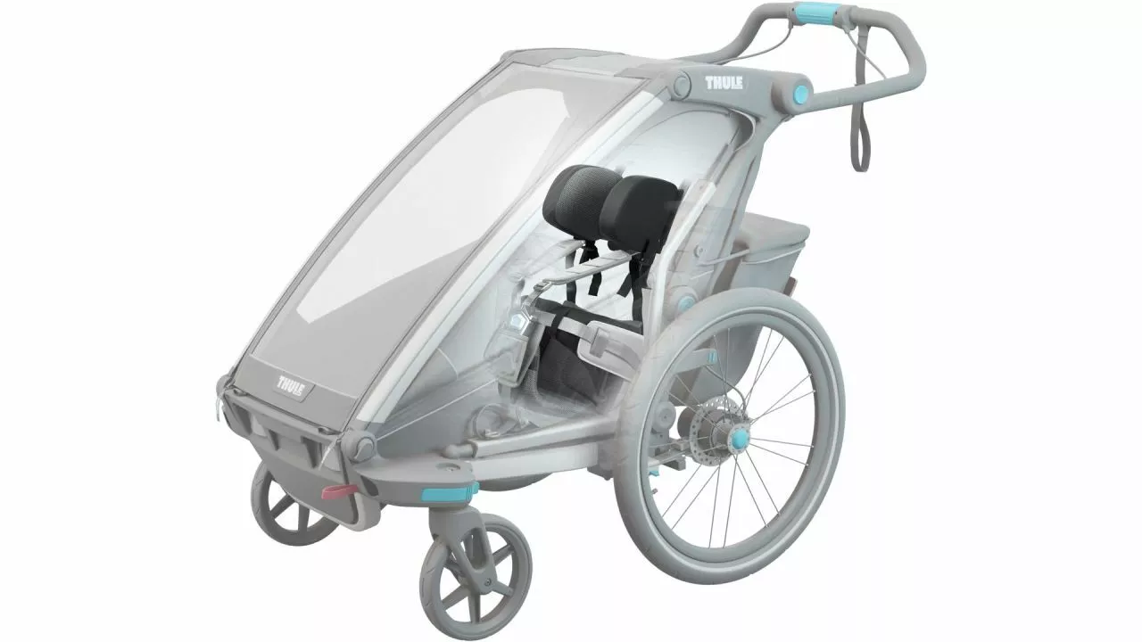 Der Baby Supporter von THULE unterstützt das aufrechte Sitzen von Kleinkindern bis 18 Monate im THULE Kinderfahrradanhänger. Die Kopfstütze lässt sich an die Körpergröße anpassen oder fürs Tragen eines Helmes auch abnehmen.