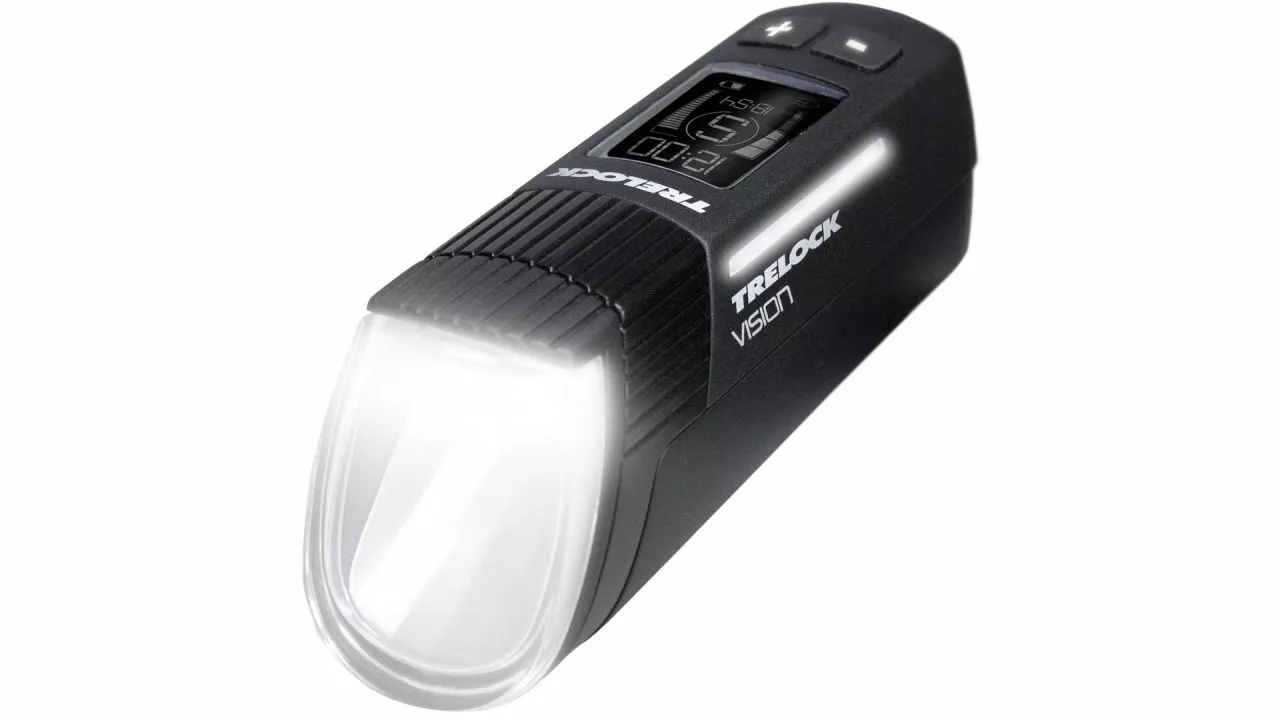 Der I-Go Vision von TRELOCK vereint moderne Technik auf wenig Raum. Dafür erleuchtet er Lux die Fahrbahn vor einem mit bis zu 100 Lux taghell. Und zwar mit einer Sichtweite von 120 m, womit sich der Akku-LED-Scheinwerfer auch für Touren abseits befestigter Straßen empfiehlt. Zumal er laut Hersteller eine Sichtbarkeit von 6.500 m aufweist. Im Straßenverkehr bringt der nach StVZO zugelassene Scheinwerfer zudem mit seiner seitlichen Beleuchtung ein extra-Plus an Sicherheit.<br><br>In der geringsten von insgesamt fünf Lichtstufen leuchtet der I-Go Vision bis zu 12 Stunden. Die verbleibende Leuchtdauer zeigt dabei das Full Controll LCD-Display auf der Oberseite an. <br><br>Dass man den Akku-LED-Scheinwerfer einfach vom Halter am Lenker abnehmen kann, hat noch einen weiteren Nebeneffekt: er lässt sich auch als Powerbank nutzen, wenn er nicht gerade leuchtet.