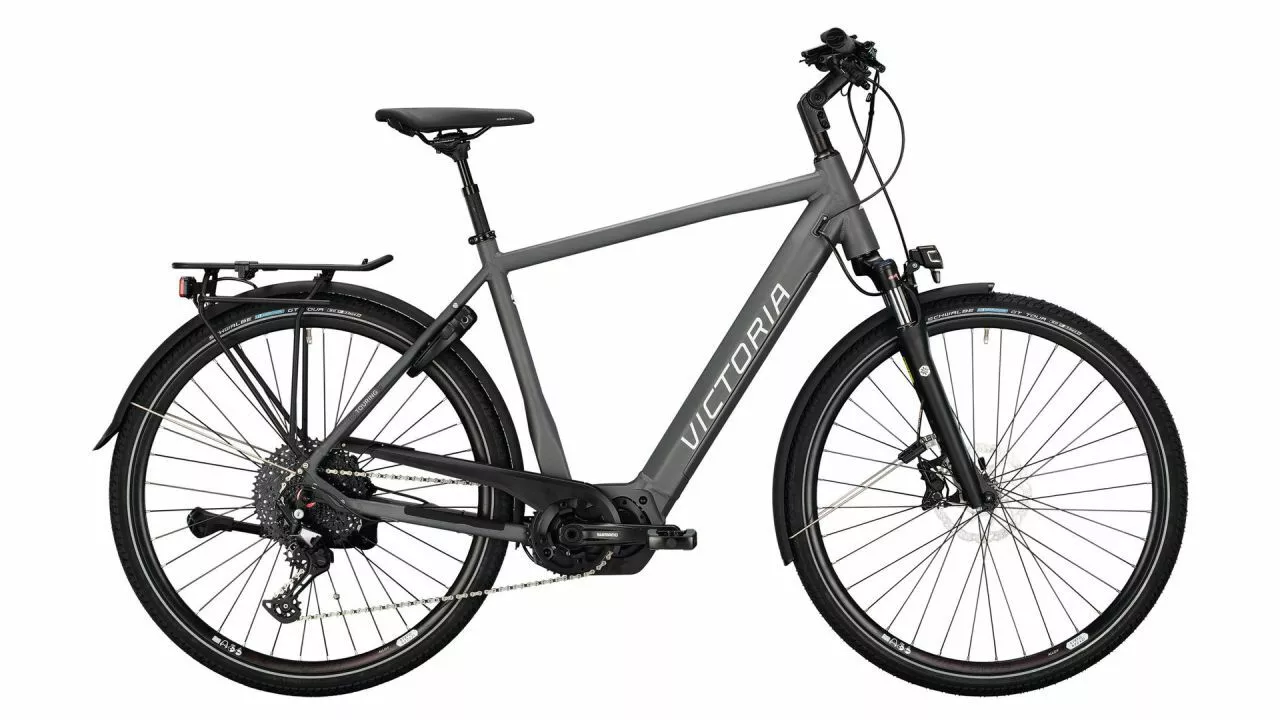 Die eTouring-Modellreihe von VICTORIA hat zum Jahrgang 2021 ein neues Topmodell. Beim eTouring 12.9 unterstützt ebenfalls ein Shimano Steps E-7000-Motor dynamisch und kraftvoll. Seine Energie bekommt er aber vom neu entwickelten InTube Akku mit 630 Wh Leistung, den der Rahmen im Unterrohr komplett aufnimmt. Den Antrieb ergänzt dazu die ebenfalls von Shimano stammende Deore Kettenschaltung mit 1 x 12 Gängen. <br><br>Der hoch entwickelte und verwindungssteife Alu-Rahmen gibt die Muskel- und Motorkräfte direkt ans Hinterrad und das an die Straße weiter. Flottes Dahingleiten oder agiles Kurvenzirkeln macht das eTouring 12.9 beides gut mit. Auch mit vollen Gepäcktaschen am MIK-Systemträger. Damit das ganze System aus Fahrrad, Fahrer und Gepäck auch punktgenau zum Stehen kommt, ist das Touren-E-Bike mit hydraulischen Scheibenbremsen Tektro HD-E390 mit vorne vier Kolben (180 mm Scheiben-Durchmesser) und am Hinterrad zwei (160 mm) ausgestattet. <br><br>Wie es ihr Modellname ankündigt, sind die Marathon Plus Tour Reifen von Schwalben auf die lange Ausfahrt auf und abseits von Asphalt ausgelegt. In 47 mm Breite übernehmen sie auch einen Teil der Dämpfungsaufgaben, um die sich hauptsächlich die aufs Systemgewicht einstellbare Federgabel von SR Suntour mit ihren 63 mm kümmert. Für Kletterpassagen oder glatte Asphaltpisten lässt sich sie auch abstellen. <br><br>Auf langen Touren spielen die CONTEC Tour Wing-Griffe ihre Vorteile mit der bequemen Auflagefläche aus. Wenn es matschig nass wird, zeigen die Schutzbleche, warum sie so weit um die Reifen herumragen, und wenn die Tour mal wieder etwas länger dauert, weil einfach der Fahrspaß anhält, dann leuchtet einem der 80 Lux starke CONTEC Dlux 80+ sicher heim. <br>