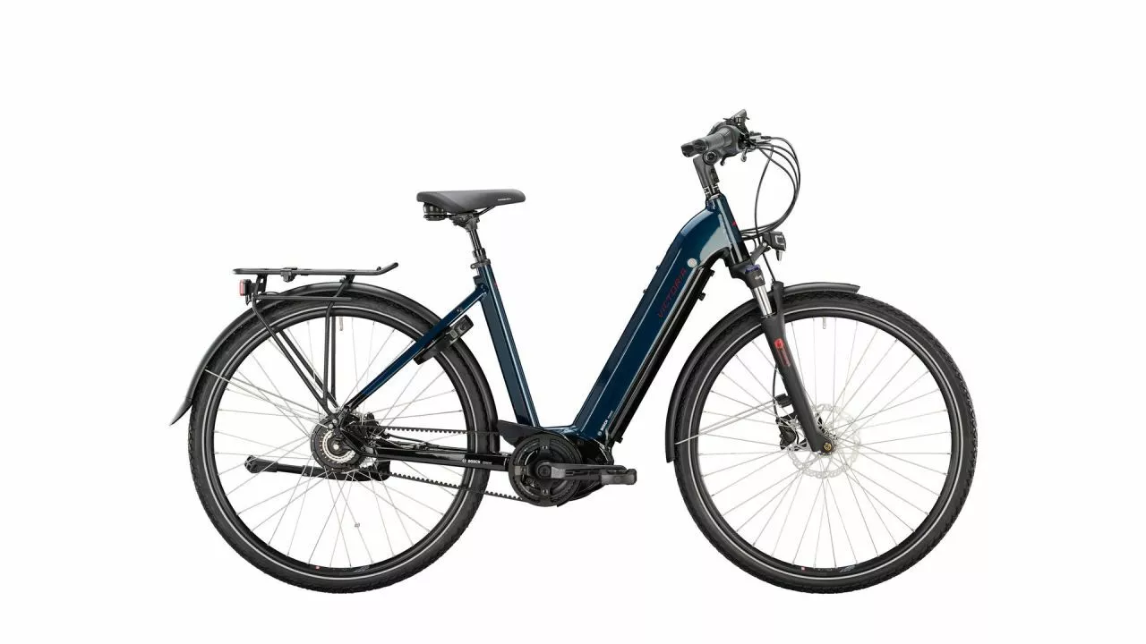 Power, Leistung und zugleich Komfort und Wartungsarmut – das zeichnet das eTrekking 11.9 aus. Das neue Topmodell mit Nabenschaltung schaltet stufenlos per ENVIOLO HD, die bestens auf die 85 Nm Drehmoment des BOSCH Performance CX Antriebs ausgelegt ist. Stufenloser Schaltkomfort dank ENVIOLO-Schaltung lässt den Fokus auf dem Verkehr oder die Landschaft liegen. Das E-Bike ist daher ein idealer Begleiter, wenn die Aufmerksamkeit auf die Umgebung – beispielsweise beim Pendeln in der City gelegt werden muss. <br><br>Mit bis zu 25 km/h unterstützt der drehmomentstarke Motor souverän. Seine Energie zieht er dabei aus dem 625-Wh-Akku, der voll integriert im Rahmen sitzt. Dadurch und mit dem zweifarbigen Design bekommt das E-Bike eine dynamische Optik. Der reduzierte Marken-Schriftzug fügt sich optimal in das Gesamtbild.<br>Wartungsarm ist das Pedelec nicht bloß dank der Nabenschaltung, auch der GATES CDX Riemen trägt dazu bei. Er arbeitet ausgesprochen leise, ist lange haltbar und läuft ohne Kettenschmierung – schmutzige Hosenbeine sind mit dieser Ausstattung längst passé. Für zuverlässigen Stillstand sorgen relativ groß dimensionierte hydraulische Scheibenbremsen (180/160 mm) von SHIMANO.<br><br>Damit das eTrekking 11.9 dem gewohnt hohen VICTORIA Komfort-Standard gerecht wird ist es mit einer Federgabel von SUNTOUR, einer gefederten Sattelstütze sowie 50 mm breite Reifen von SCHWALBE ausgestattet. Die Reifen überzeugen zusätzlich mit ihrer Haltbarkeit sowie dem hohen Pannenschutz und leisten ein Plus an Sicherheit im Straßenverkehr dank der Reflexstreifen. Mit 120 Lux leuchten die CONTEC Scheinwerfer den Weg im Dunkeln extrem hell aus. Das Rücklicht mit Stopplichtfunktion gibt sogar nachfolgenden Radfahrer die Chance, besser auf spontane Bremsmanöver zu reagieren.