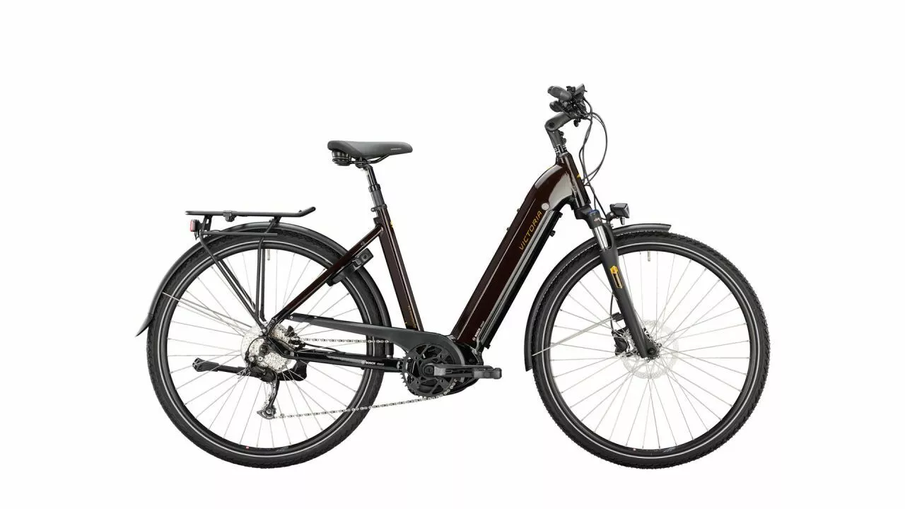 Das eTrekking 12.8 ist einer der ungeschlagenen Bestseller der eTrekking-Baureihe. Neu ist das frische und cleane Erscheinungsbild des VICTORIA E-Bikes, das durch die Zweifarbigkeit und den reduzierten Marken-Schriftzug geprägt ist.<br><br>Nach wie vor wird das eTrekking 12.8 vom 85 Nm drehmomentstarken BOSCH Performance CX angetrieben, durch den das Bike sowohl für ausgiebige Genuss-Touren als auch für durchaus sportlich angehauchte Berg-Fahrten ausgelegt ist. Gespeist wird der Mittelmotor vom 625-Wh-Akku, der voll in den voluminösen Rahmen integriert ist und ausdauernd arbeitet. Über das Intuvia Display lässt sich die gewünschte Unterstützungsstufe einstellen.<br><br>Einen attraktiven Mittelweg zwischen Preis und Leistung haben die Entwickler für alle weiteren Komponenten gewählt: Etwa die SHIMANO Alivio 9-fach Kettenschaltung, mit der sich die gewünschte Tritt- und Antriebsfrequenz genau wählen lässt. Präzise dosieren lassen sich die starken Kräfte der hydraulischen Scheibenbremsen BR-MT200 von SHIMANO, die auch bei Nässe verlässlich greifen.<br><br>An den MIK-Systemträger lassen sich entsprechende Taschen und Körbe einfach befestigen, bevor es auf eine Langstrecken-Tour geht. Der ergonomisch geformte Lenker und die Wing-Griffe sind genau für solche Vorhaben ausgelegt. 50 Lux leuchten den Weg, wenn es nach mal länger geworden ist. Entnehmen lässt sich der BOSCH PowerTube Akku übrigens über den stabilen Deckel nach unten hin. Zum Laden kann er sogar bleiben, wo er ist – das funktioniert nämlich über die Ladebuchse am Unterrohr.