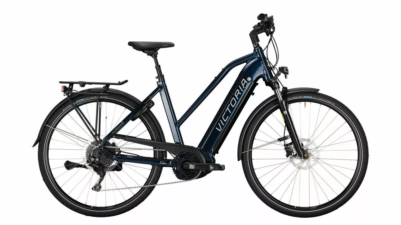 Wenn die Entwicklungs-Ingenieure bei VICTORIA den Auftrag haben, das Topmodell der eTrekking-Serie noch einmal besser zu machen, dann kommt da halt so ein dynamisches Touren-E-Bike mit klarer Formensprache und hochklassiger Technik wie das eTrekking 12.9 bei heraus.<br><br>Sein aufgeräumtes Äußeres erreicht das eTrekking 12.9 vor allem durch den im Unterrohr integrierten Akku, der mit 625 Wattstunden (Wh) noch einmal mehr Reichweite als im Vorjahr vorhält. Mit der Akku-Integration und seinen kantigen, klaren Formen hat der gesamte Rahmen zusätzlich an Steifigkeit gewonnen. So fährt sich das eTrekking 12.9 auf ausgedehnten Touren ausgewogen sportlich. Auch mit bis zu 25 kg Gepäck am stabilen MIK-Gepäckträger. <br><br>Für den dynamischen Part ist der neue Bosch Performance CX Motor zuständig. Er sorgt für den sportlichen Schub mit kräftigen 85 Newtonmetern und fügt sich nahtlos in den Tretlagerbereich mit ein. Seine Kräfte lassen sich über die vier Unterstützungsstufen am Intuvia-Display einteilen, und das Feintuning beim Antrieb übernimmt die Shimano XT-Schaltung mit ihren 11 Gängen. Mit ebenfalls viel Bedienkomfort funktionieren die hydraulischen Scheibenbremsen BR-MT 500 von Shimano immer leichtgängig und mit Feingefühl, aber wenn es drauf ankommt mit viel Biss.<br><br>Auf unbefestigten Wegen spielt die Federgabel ihre Stärken aus. Und wenn es dunkel wird, weil der Tourenspaß mal wieder länger anhält, glänzen der Scheinwerfer von CONTEC mit seinen 120 Lux und das Rücklicht mit Stopplicht-Funktion.<br>Entnehmen lässt sich der Bosch PowerTube Akku über den Deckel nach unten hin. Laden lässt sich der Energiespender direkt über den Stecker am Unterrohr des Top-Modells der eTrekking 12-er-Serie von VICTORIA.<br>