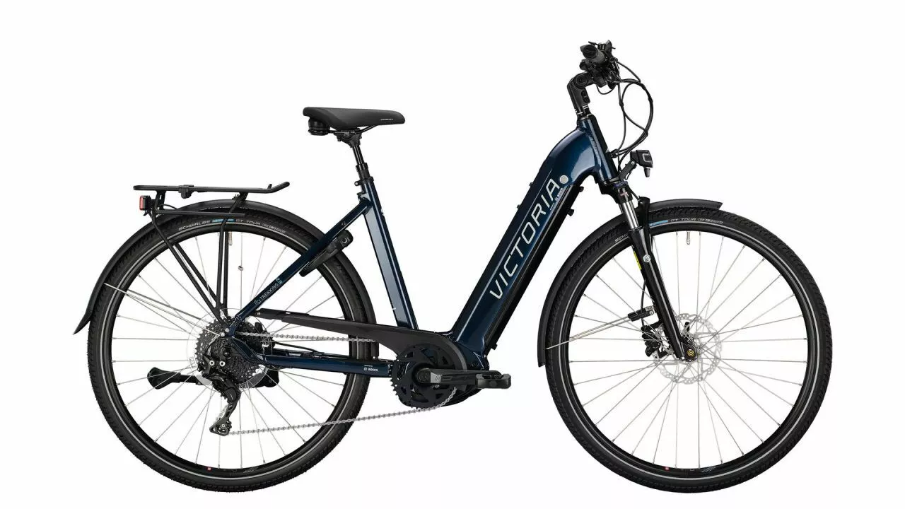 Wenn die Entwicklungs-Ingenieure bei VICTORIA den Auftrag haben, das Topmodell der eTrekking-Serie noch einmal besser zu machen, dann kommt da halt so ein dynamisches Touren-E-Bike mit klarer Formensprache und hochklassiger Technik wie das eTrekking 12.9 bei heraus.<br><br>Sein aufgeräumtes Äußeres erreicht das eTrekking 12.9 vor allem durch den im Unterrohr integrierten Akku, der mit 625 Wattstunden (Wh) noch einmal mehr Reichweite als im Vorjahr vorhält. Mit der Akku-Integration und seinen kantigen, klaren Formen hat der gesamte Rahmen zusätzlich an Steifigkeit gewonnen. So fährt sich das eTrekking 12.9 auf ausgedehnten Touren ausgewogen sportlich. Auch mit bis zu 25 kg Gepäck am stabilen MIK-Gepäckträger. <br><br>Für den dynamischen Part ist der neue Bosch Performance CX Motor zuständig. Er sorgt für den sportlichen Schub mit kräftigen 85 Newtonmetern und fügt sich nahtlos in den Tretlagerbereich mit ein. Seine Kräfte lassen sich über die vier Unterstützungsstufen am Intuvia-Display einteilen, und das Feintuning beim Antrieb übernimmt die Shimano XT-Schaltung mit ihren 11 Gängen. Mit ebenfalls viel Bedienkomfort funktionieren die hydraulischen Scheibenbremsen BR-MT 500 von Shimano immer leichtgängig und mit Feingefühl, aber wenn es drauf ankommt mit viel Biss.<br><br>Auf unbefestigten Wegen spielt die Federgabel ihre Stärken aus. Und wenn es dunkel wird, weil der Tourenspaß mal wieder länger anhält, glänzen der Scheinwerfer von CONTEC mit seinen 120 Lux und das Rücklicht mit Stopplicht-Funktion.<br>Entnehmen lässt sich der Bosch PowerTube Akku über den Deckel nach unten hin. Laden lässt sich der Energiespender direkt über den Stecker am Unterrohr des Top-Modells der eTrekking 12-er-Serie von VICTORIA.<br>
